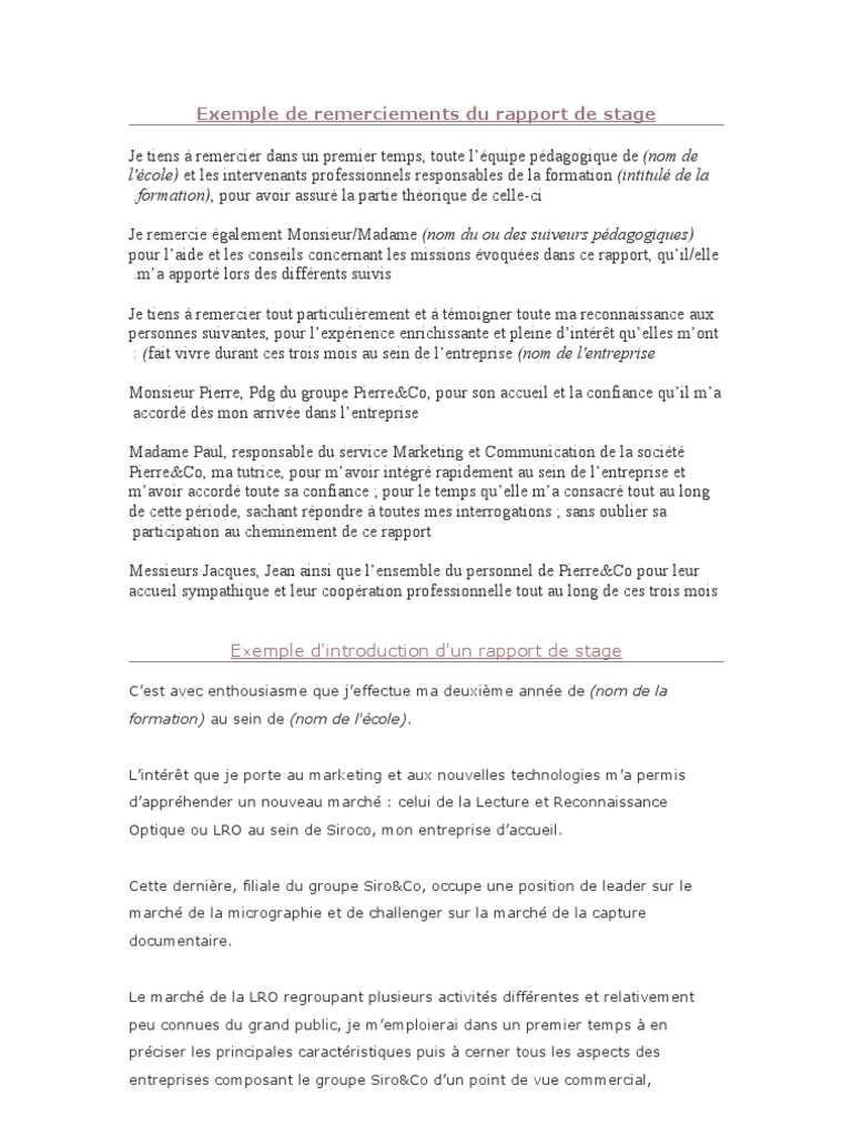 Candidature spontanée pour un stage au sein de votre établissement. Ecrire une lettre de remerciement suite à un stage. Vous avez découvert le milieu du travail et un univers professionnel en particulier. De bons remerciements dans un rapport de stage vous permet de rendre hommage aux personnes qui vous ont aidé. Exemples de cv de lyce nashimotome.